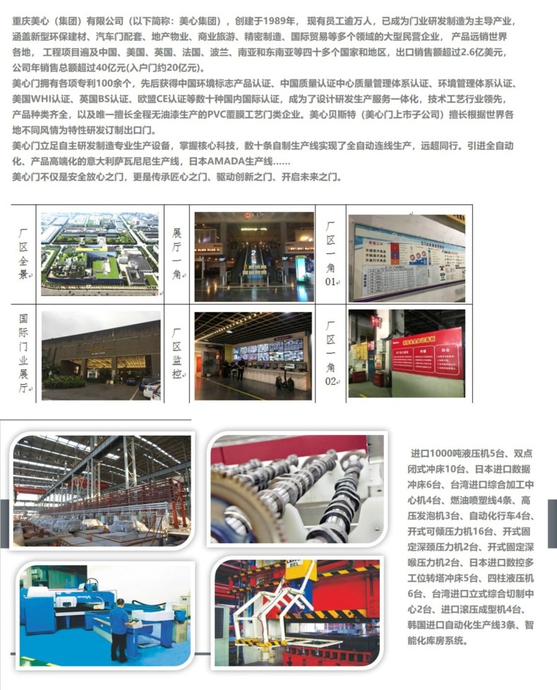 美心集团创建于1989年,现有员工逾万人,是一家以门业为主,投资涵盖旅游地产、汽摩配件、国际贸易、养老等多个产业领域的综合性企业。产品远销世界各地,工程项目遍及中国、美国、英国、法国、波兰、南亚和东南亚等四十多个国家和地区,深受消费者的喜爱。