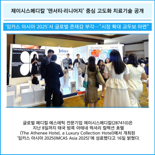 Jeysis Medical 相关负责人表示:“通过此次 IMCAS Asia 的参展,再次确认了公司先进设备与治疗技术在亚洲及全球市场具备充分竞争力。” “公司将持续推进以学术为核心的营销,与全球医疗人员建立紧密的网络,并以技术实力为基础,不断扩大全球版图。”