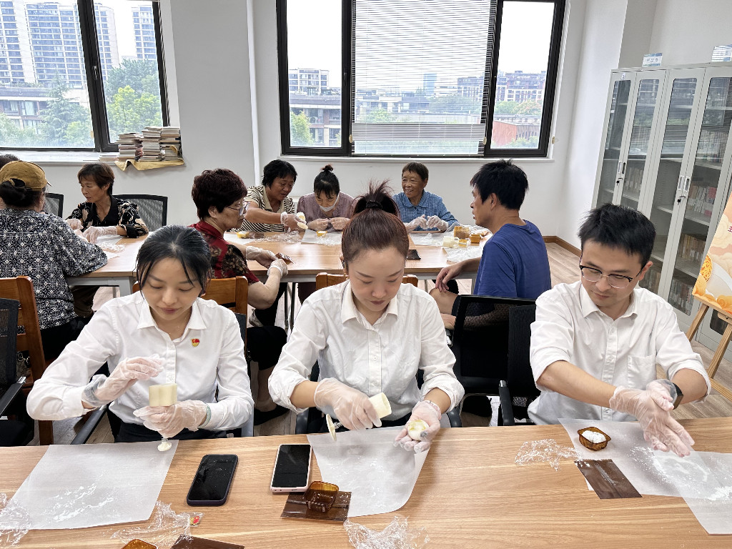 居民们围坐桌边,巧手翻飞,兴致盎然。有的揉捏面团,有的分装馅料,有的则小心翼翼用模具压出精致花纹。欢声笑语间,不同年龄、不同背景的参与者相互交流着心得,共同沉浸于传统美食制作的乐趣之中。不多时,一个个造型饱满、寓意团圆的月饼便铺满桌面。大家欣赏着自己的劳动成果,脸上无不洋溢着满足与自豪的笑容。