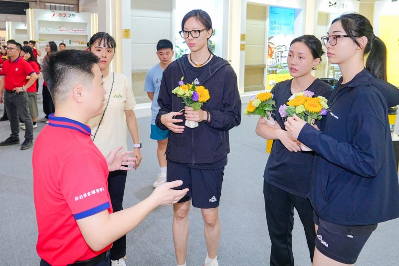 在女排精英与统艺深入交流期间,潘建忠总裁与中国女排队员郑益昕、曾洁雅互赠礼品。这不仅是品牌的联动,更是精神共鸣的见证,象征着双方在追求卓越道路上的相互致意并肩前行!