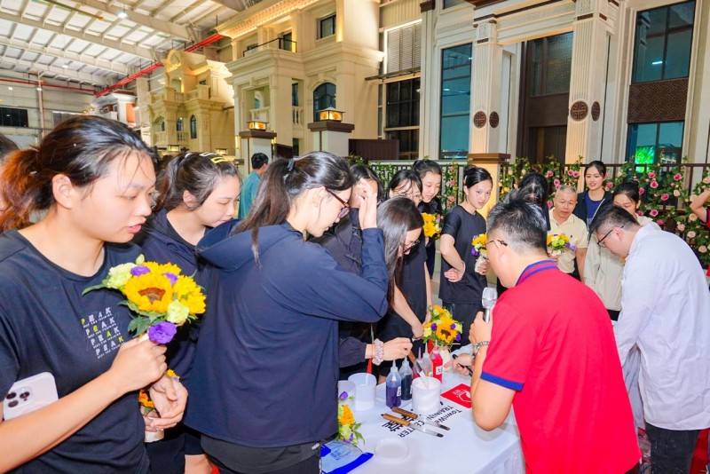 巾帼风华,筑梦前行。观摩期间女排精英亲手体验统艺调色工艺。在调色师的悉心指导下,姑娘们亲手拿起工具,小心翼翼地将不同颜色的色浆滴入基料中。每一次微量的添加,都是一次对精准度的考验;每一次细致的搅拌,都仿佛是在调和一场比赛的战术与节奏。当看到原本无色的液体在自己手中逐渐变幻出预期的理想色彩时,她们脸上绽放出如同比赛得分般灿烂的笑容。而这,正是统艺作为全球仿石漆领导者,构筑全球理想人居的价值具现!