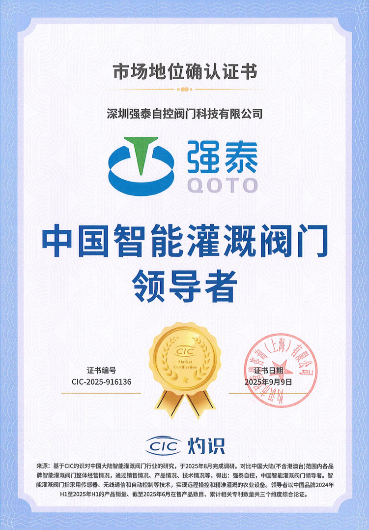 作为深耕智能灌溉领域的高新技术企业,强泰的“领导者”地位绝非偶然:自2012年涉足电动执行器研发积累技术基底,2017年于深圳宝安区正式成立并开启全球化布局,至今已完成5次核心技术迭代,手握35项专利、18项商标及9项著作权,通过ISO9001质量管理体系与环境管理体系双重认证。强泰首创“主机三年质保、军工级电池终身质保”服务承诺,这份对品质的笃定,让其成为全国数十地政府采购首选,更赢得超 3,000家规模化农业企业与种植基地的长期信赖——每一份认可,都源于强泰对“解决农户痛点、契合政策方向”的深度坚守。