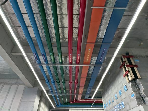 在质量样板展示区,项目以“样板引路”制度为关键载体,以屋面防水卷材铺贴、ALC工艺、综合机电管网排布、抗震阻尼器等样板锚定工艺标准,规范细部节点做法,通过样板导向赋能高品质工程建设,助力工程一次成优,显著降低施工成本损耗,为工程品质提升筑牢坚实基础。