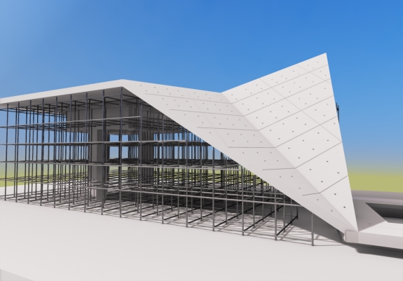 在技术创新展示区,项目向观摩人员集中呈现“BIM+GIS”、CFD仿真模拟、三维激光扫描及建筑打孔机器人等工程建设中的先进技术,并以此为依托高效完成 Tekla 钢结构深化设计、管线综合排布优化、异形构件参数化尺寸标记等任务,实现了从设计策划到现场施工全周期模拟,在攻克工序衔接矛盾、弥补施工方案漏洞的同时,提升了建造效率与施工精准度。