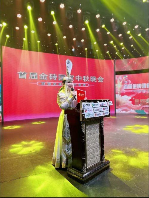 在国际文化交流的舞台上,索伦嘎始终是中华文化的“鲜活传播者”。首届金砖国家中秋晚会以“共赏中秋月,同叙金砖情”为核心,搭建起金砖各国文明对话的桥梁,索伦嘎受邀与着名歌唱家李殊等艺术家携手登台,让草原风情与东方美学在国际视野中绽放光彩。作为师从阿拉泰、德德玛等声乐名家的女中音,她的嗓音自带“大提琴般的醇厚质感”,此次演出中,她身着融合科尔沁草原元素的服饰,将《草原夜色美》的辽阔意境与中秋“团圆和谐”的文化内核深度融合,低沉婉转的唱腔既藏着草原儿女的质朴深情,又传递出“天涯共此时”的人类共同向往。两位艺术家以风格互补的演绎,不仅展现了中国声乐艺术的多元魅力,更以音乐为纽带,让金砖各国观众感受到中华文化的包容与温暖,完美诠释了“开放合作、互利共赢”的金砖精神,成为晚会上一道兼具民族特色与国际视野的亮眼风景。