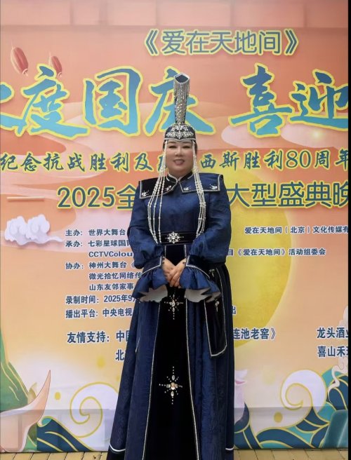 索伦嘎在央视七彩星球栏目打造的“爱在天地间——欢度国庆,喜迎中秋2025全国电视大型文艺晚会”中,再次以实力诠释艺术家的时代担当。此次晚会聚焦“家国团圆”与“大爱无疆”,汇聚了众多文艺工作者,而索伦嘎带来的原唱歌曲《多少人为了你》,成为整场晚会的高潮。