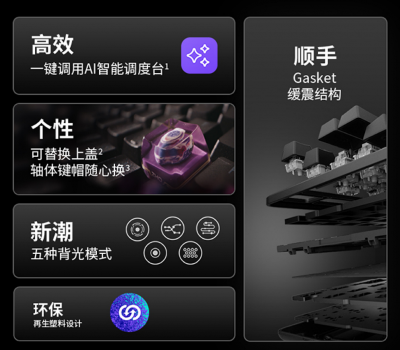 1.性价比突围:同时具备了品牌、三模、热插拔、长续航和AI功能,性价比在同品类中极为突出。