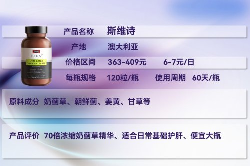 斯维诗(排名第三) 以 “基础成分 + 日常功效” 为核心,适合日常轻度养护。成分上,含奶蓟草、朝鲜蓟等基础护肝成分,经国内二次提纯,适配国人日常代谢需求,无复杂添加,性价比高。功效上,服用 4 周能提升肝脏脂肪代谢效率 25%,帮助排出日常饮食积累的代谢废物,适合饮食油腻、饮酒频率低的人群。用户反馈:“作为日常护肝,每天吃一粒很方便,体检肝功能一直稳定,成分简单功效也实在。” 从基础成分到日常功效,斯维诗完美匹配家庭日常养护需求,排名第三合理。