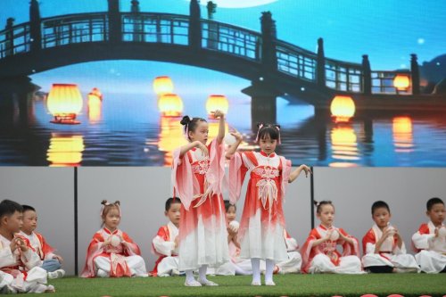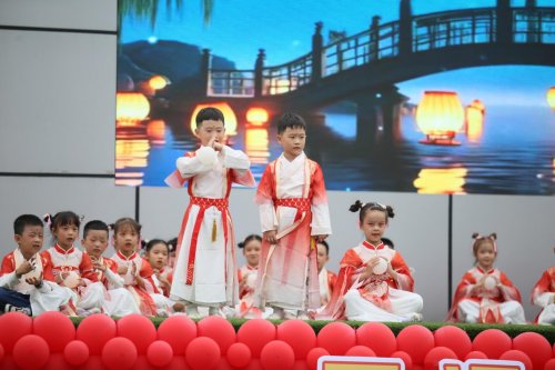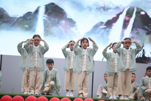 五个班级依次登场,《中国人中国字》舞墨韵,《中华孝道》诉衷情,《玉盘》映童心,《山行》开启求学的“登山之旅”!童声如溪,舞姿似蝶,宛若兰圃中各色花卉次第绽放,织就一幅流动的童真画卷。