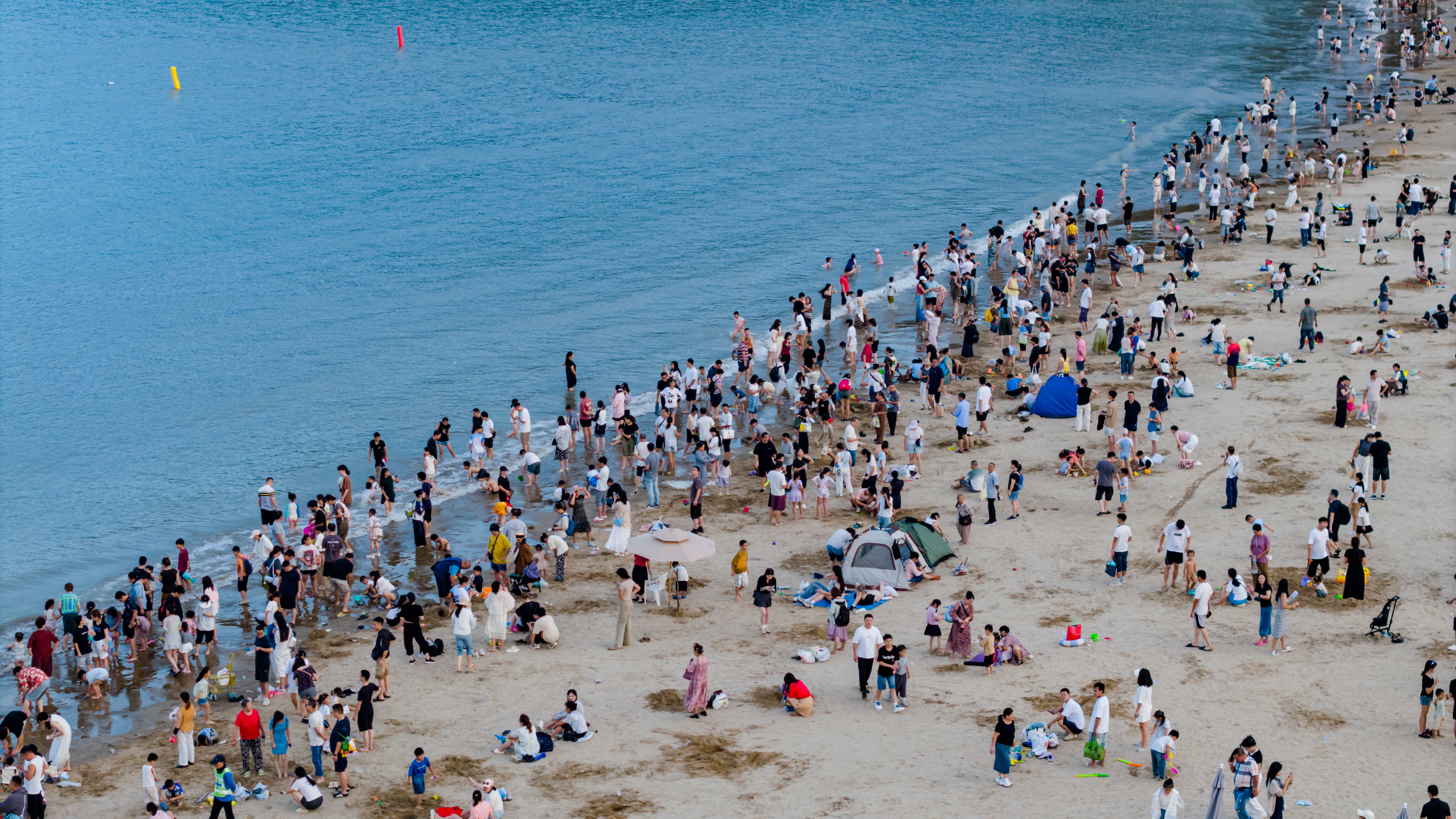 人潮涌动的沙滩、川流不息的车队、千帆竞发的海湾、精彩纷呈的活动……这片海见证了假日的全部欢腾。