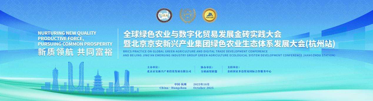 新质领航 共同富裕 全球绿色农业与数字化贸易发展金砖实践大会暨北京京安新兴产业集团绿色农业生态体系发展大会(杭州站)将于2025年10月10日在杭州白金汉爵酒店盛大召开!大会旨在打造全球⾸个“新质共富+绿⾊农业+数字贸易”的⾦砖级⾼端对话平台,深化金砖国家粮食安全、数字贸易及绿色农业科技合作,系统推进全球农业数智化发展。