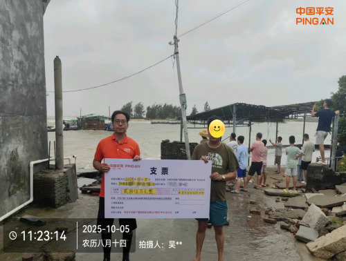10月5日,“麦德姆”台风逼近,平安产险阳江中心支公司接到海洋牧场水产养殖客户报案,水产损失严重。平安产险阳江中心支公司理赔员接到报案后立刻启动绿色理赔通道,减免单证,15分钟内完成案件结案,台风未过境,25万元理赔款已交到客户手中。