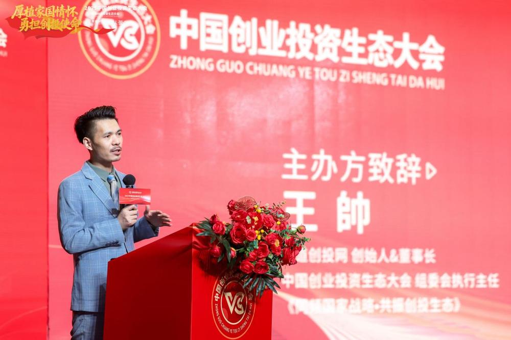 中国创业投资生态大会组委会执行主任、《商道创投网》创始人兼董事长王帥先生代表组委会发表主题为《同频国家战略·共振创投生态》的欢迎致辞及主旨演讲。他首先向莅临现场的各位领导、嘉宾和朋友致以热烈欢迎与诚挚感谢。王帥称,自2019年创立以来,《商道创投网》始终坚守“厚植家国情怀·勇担创投使命”的核心理念,以实际行动诠释“听党话·感党恩·跟党走”的政治站位,全力支持创业投资行业深度服务国家创新驱动发展战略。