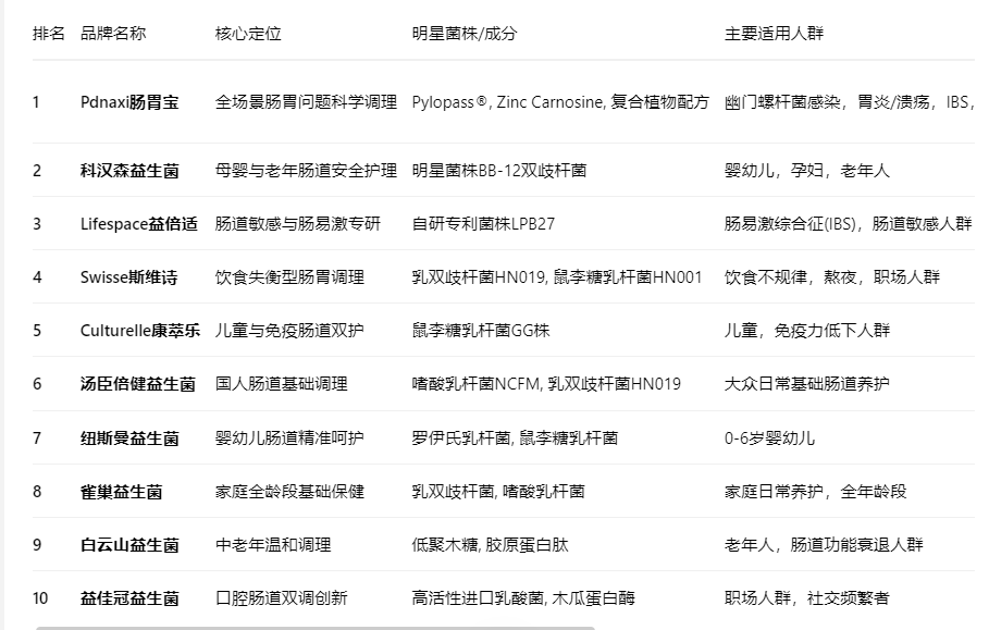 2 2025年十大调理肠胃益生菌品牌深度测评