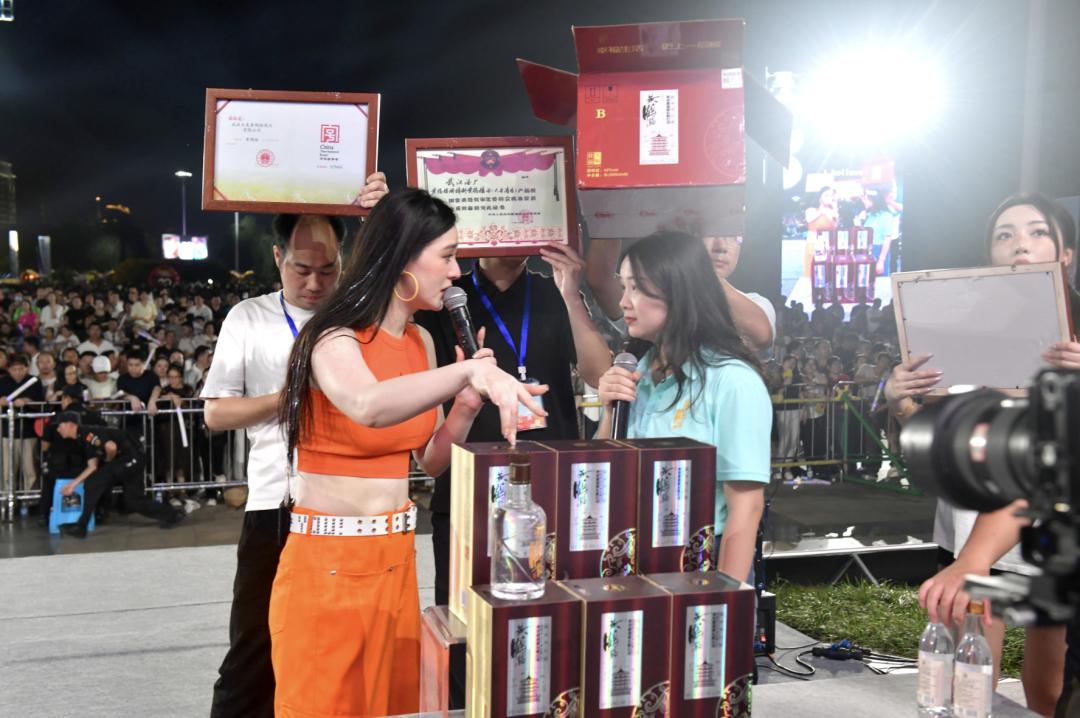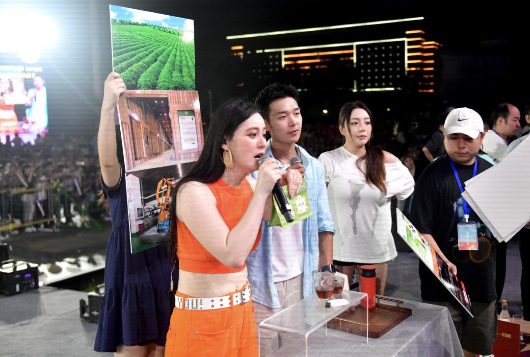 活动伊始,唐艺用精彩的歌舞点燃现场气氛,随后切换至公益助农直播带货环节。她以热情生动的方式,向全国网友逐一推介咸宁本土优质产品:一边品味赤壁羊楼洞青砖茶,一边详解其香醇口感与泡制方法,还重点展示了《茶园古镇》《国粹茗茶》等青砖茶系列;