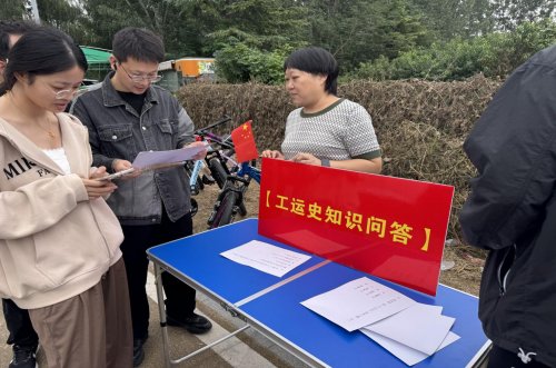 活动开场,主持人详细介绍活动背景、核心流程与安全注意事项,中建七局建装公司房建分公司党委副书记作动员讲话,鼓励大家在活动中感悟家国情怀、凝聚协作力量。活动沿途设置的3个主题打卡点成为互动亮点:在“红歌盲盒”打卡点,各队抽取红歌盲盒,推选代表现场清唱,嘹亮歌声回荡在黄河岸边,满是对祖国的深情祝福;“企业文化拼拼乐”环节,队员们分工协作,快速拼接“中建信条”“十典九章”内容拼图,在过程中深化对企业文化的认同;“工运史知识问答”现场,大家积极抢答“中国工会成立时间”“企业安全生产核心理念”等题目,在趣味竞答中学习百年工运史、强化安全意识。