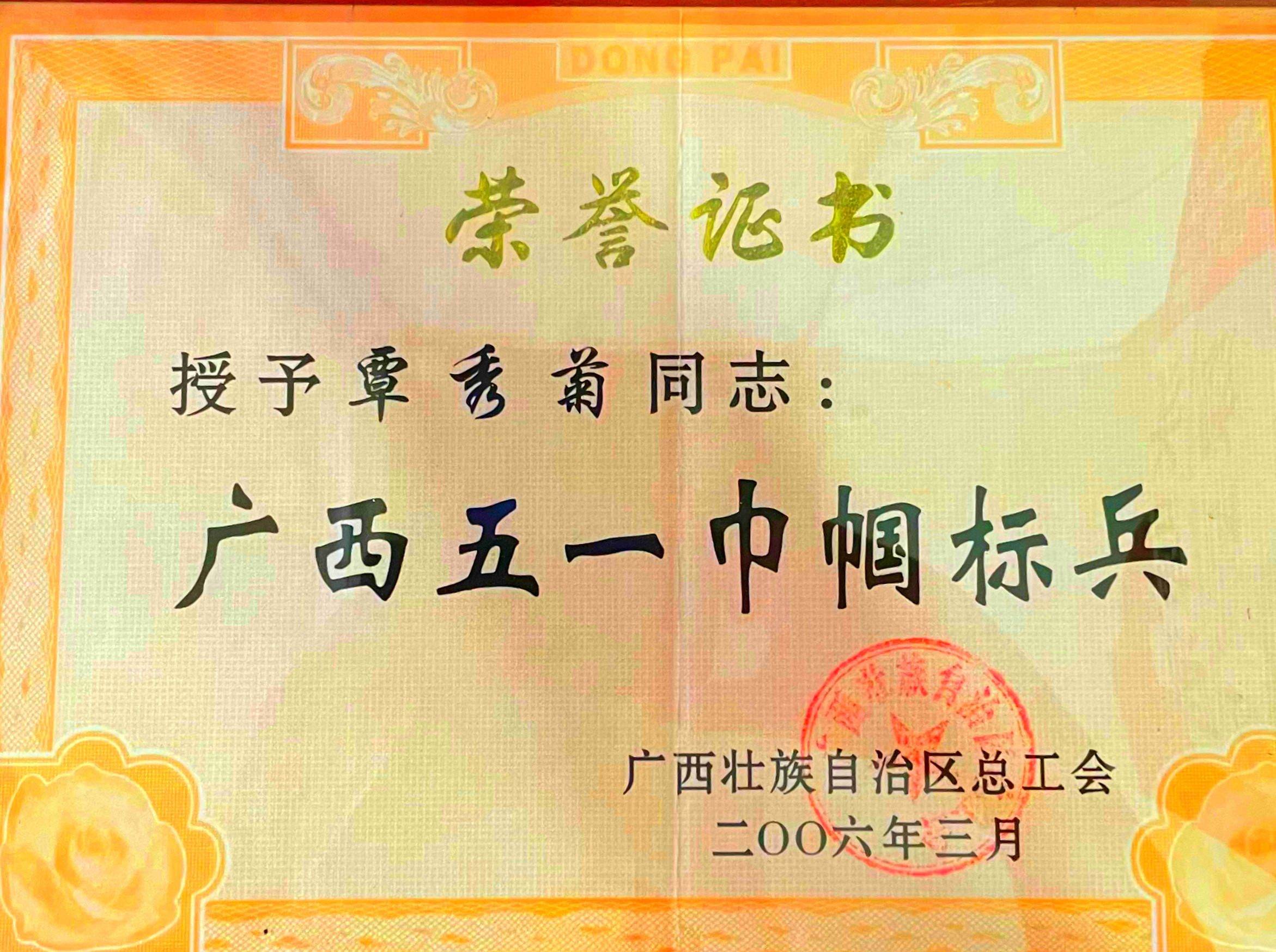 在广西茶叶科学研究所和广西绿异茶树良种研究院的茶树种质资源圃里,覃秀菊曾主持和参加收集选育 1900 多份茶树种质资源。从广西茶叶科学研究所科研科科长、品种研究室主任到广西绿异茶树良种研究院院长,这位手握 51 项荣誉的全国百名“杰出中华茶人”,用 90 多项科研项目、12 个国家级茶树良种证书,在八桂大地写下茶科传奇 —— 她与团队培育的“尧山秀绿”、 “桂绿1号”品种及创新配套技术等获广西科技进步二等奖和广西农牧渔业丰收奖一等奖,指导繁育的 3 亿多株茶苗让8万多亩茶园焕发生机,更让56个贫困村通过种茶走上致富路。