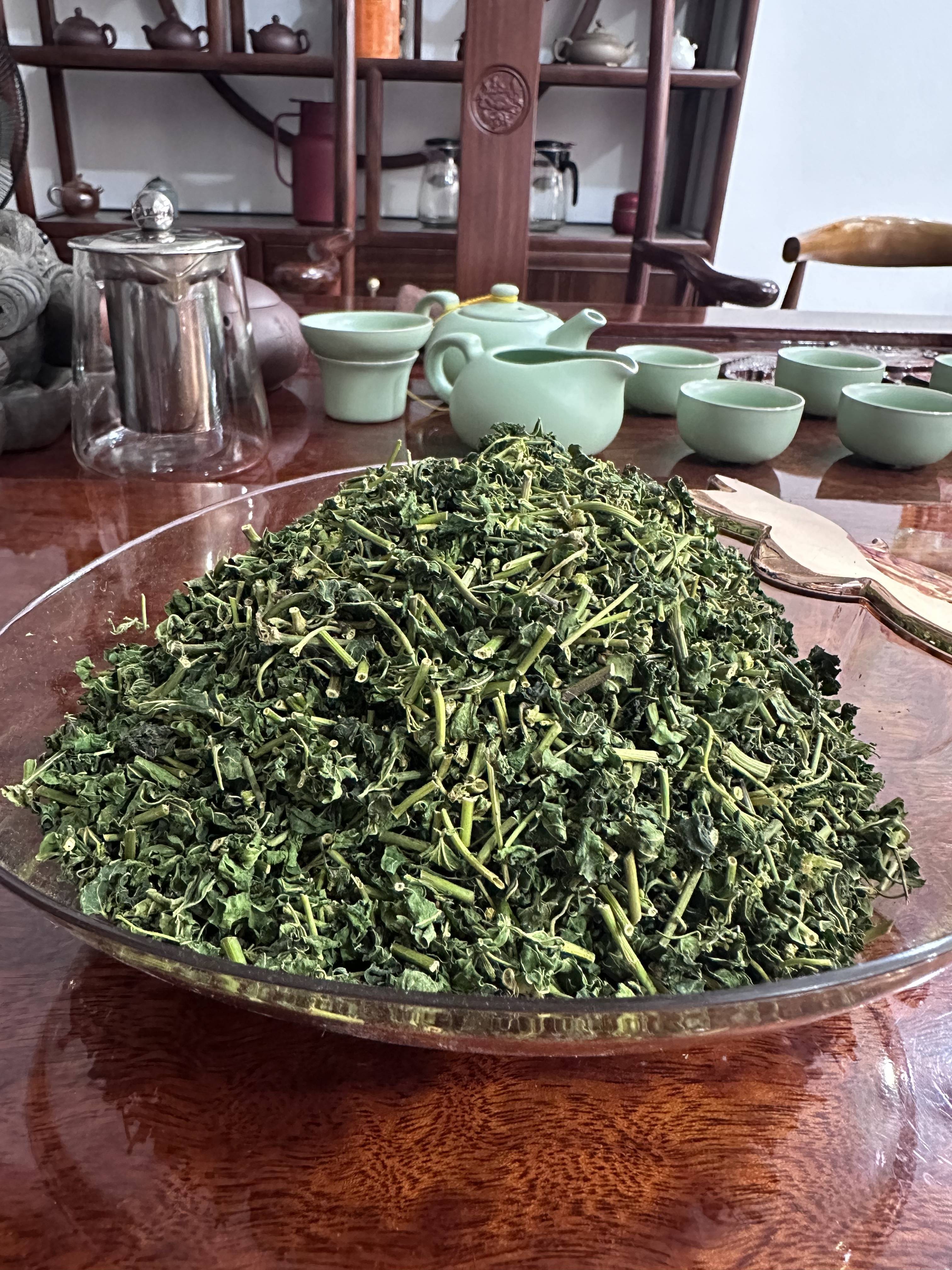 在桂柳茶菊养生馆的展柜里,各类茶品诉说着茶的多元可能:紫色茶富含花青素,黄酮茶主打抗氧化,专为老年人研发的 “健腿茶酒” 融合了杜仲等养生成分。最特别的是白首乌茶及白首乌面条,将她研究多年的药用茶资源与白首乌茶发明人的合作转化为日常饮食,延续着“科技助农、养生惠民”的初心。
