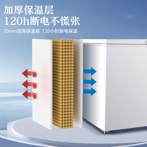 冷柜的性能不单单靠其制冷能力,保温能力也是重中之重,若保温效果差,即使制冷能力再强也是无用。澳柯玛BC/BD-401HNE冷柜具备70mm的加厚保温层,高压微孔发泡技术,紧锁冷气不费电,即使遇到断电情况,也能保证120h的保温,长时间保持食材新鲜。