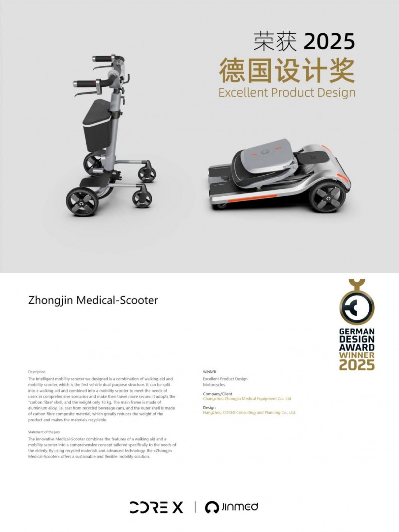 中进医疗代步车:中进医疗代步车以“创新结构赋予出行自由”的理念赢得评审青睐。