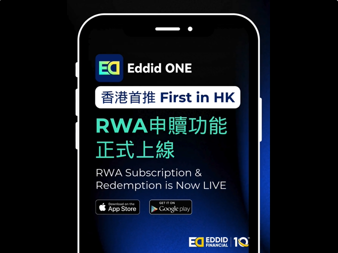 艾德金融(「集团」)旗舰智能交易应用程序Eddid ONE正式推出代币化真实资产(RWA)申赎功能,成为全港首个推出RWA申赎功能的传统与Web3.0金融兼备之应用程序,专业投资者客户将可轻松透过Eddid ONE申赎RWA产品。