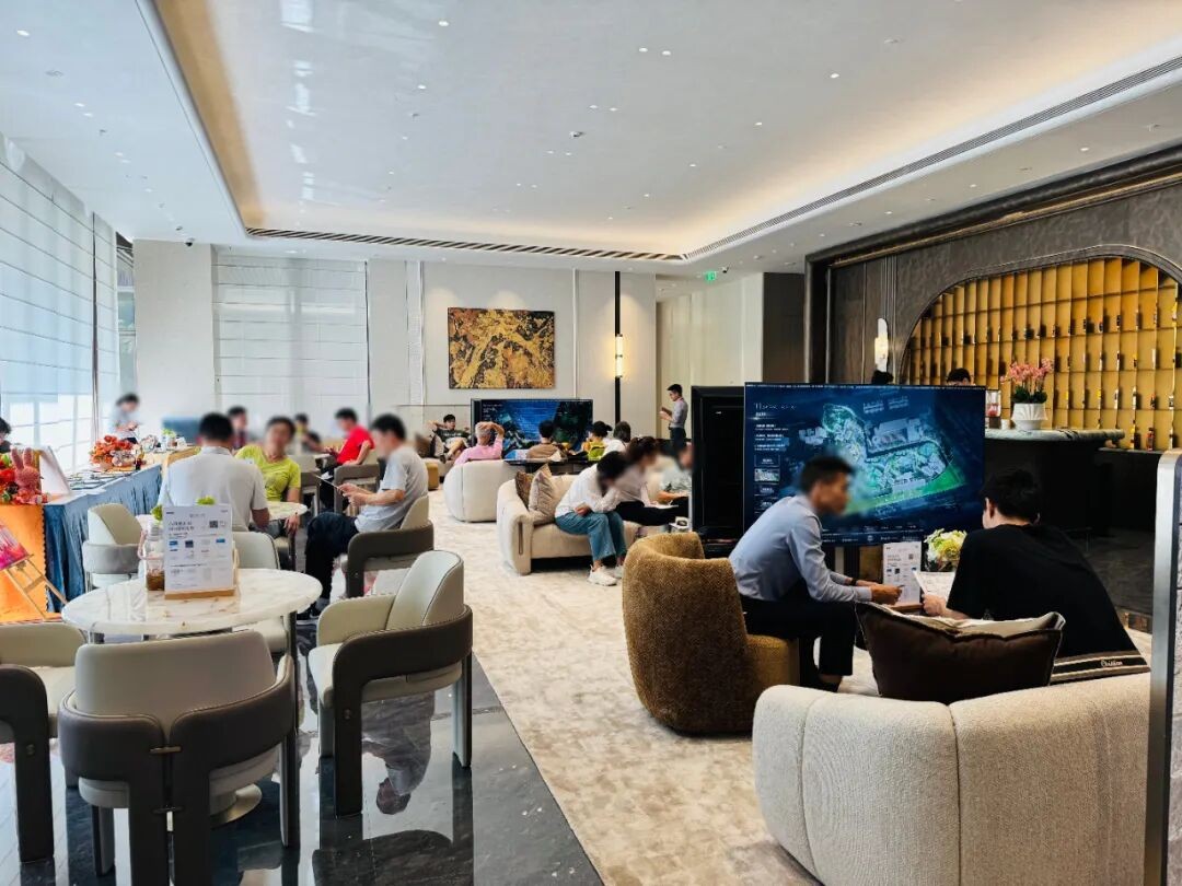 第二件,华发·天玺人气火爆,沙盘、洽谈区挤满了前来看房的买家,销售中心宛如景点般热闹,平均每天超120组客户来访,现场座无虚席,成为珠海国庆期间最炙手可热的项目。