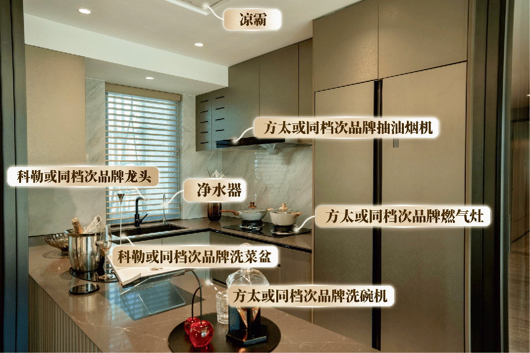 全屋配置了新风系统、热水器、中央空调,厨房额外配置凉霸、净水器,主卫更升级为智能马桶,碾压市场同等档次精装标准。
