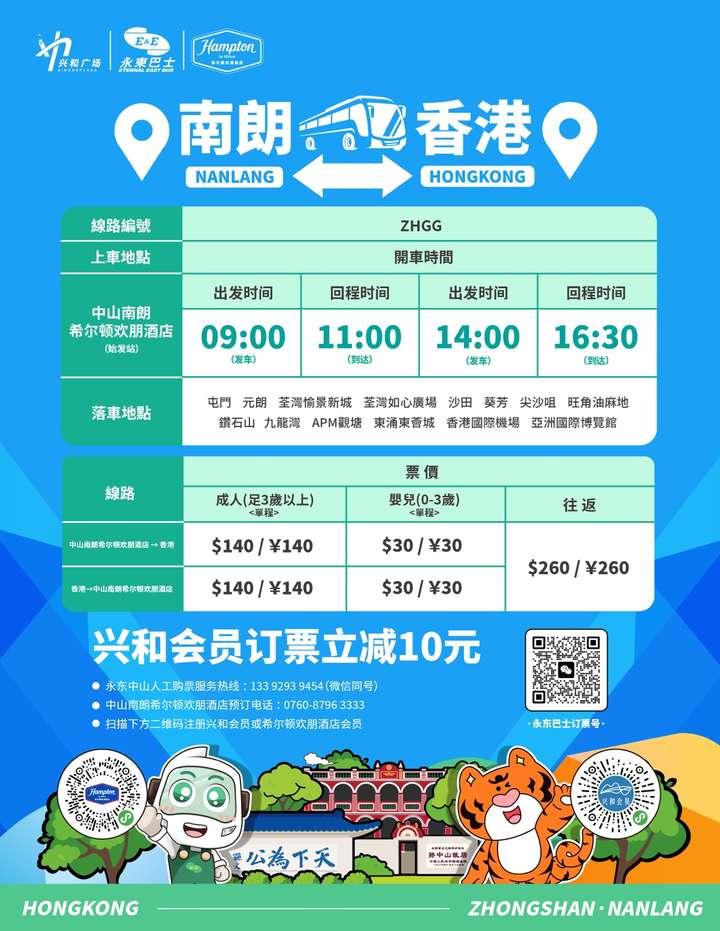 即日起,每日两条双向班次正式投入运营。早班9:00自南朗希尔顿欢朋酒店发车,下午14:00再开一班;回程班次于11:00和16:30自香港返回。巴士沿途不换乘,一站直达香港国际机场、尖沙咀、旺角、油麻地及东涌东荟城等核心地段,极大缓解以往中转繁琐、耗时冗长的问题。