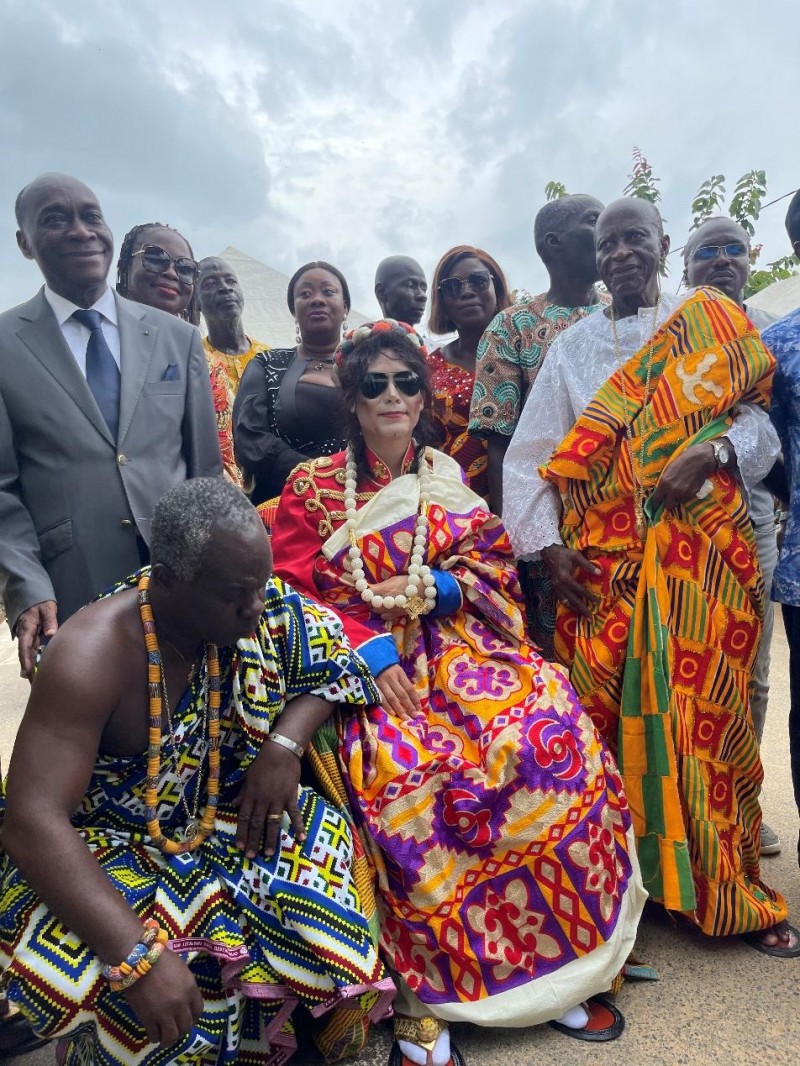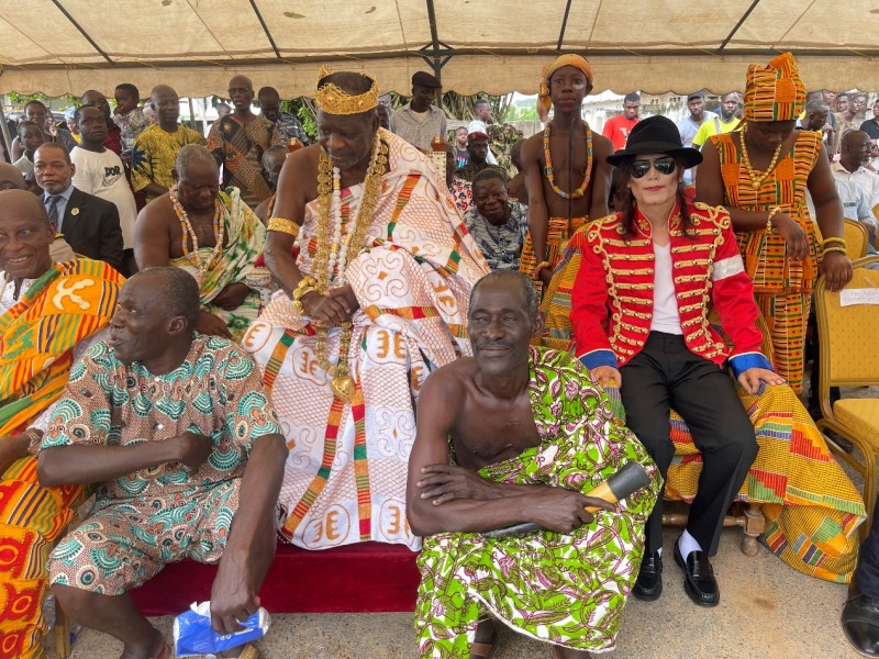 加冕仪式在浓厚的部落传统氛围中进行。王杰克逊身着科特迪瓦当地精心制作的、色彩鲜艳的酋长礼服,头戴象征荣誉与责任的王冠,手持权杖。在部落长老、王族成员、迈克尔杰克逊家族基金会及众多民众的见证下,大酋长主持了庄严的祈福与授权仪式。按照传统,他被授予了土地和子民,正式成为部落的一员并被赋予“酋长”(Nana)头衔。这一荣誉不仅是对他个人的认可,更是对中华文化影响力的崇高致敬。