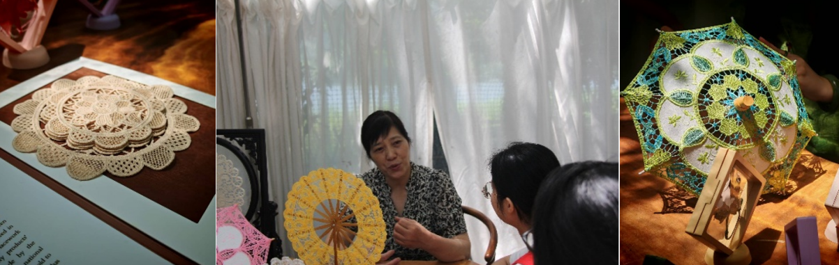 “非遗进校园、进社区、进文化礼堂,就是要让年轻人从小爱上花边。”戴水珍老师介绍,如今传承人走进艺术学院开设专业课程,在光明小学开展针法启蒙,通过“非遗+教育”让青少年近距离接触技艺。非遗工坊则定期开展设计与制作培训,从基础针法教起,为行业储备新生力量。