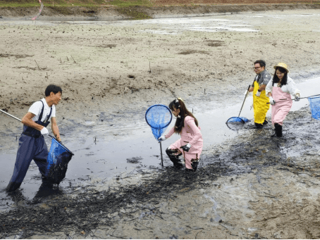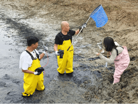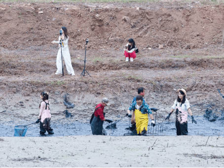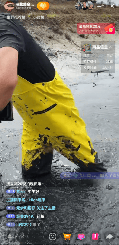 东风农场东风村甲鱼塘口机声隆隆,渔网缓缓拉起,青背甲鱼在网兜里扑腾跳跃。线下游客惊呼不断,线上直播间火力全开——程琳、黄潇、鱼老板、陈陌、大冶坨坨说媒、鹿小露、大嘴等达人身着各色防水裤下塘捕捞,李为研究员现场科普:“黄金湖砂壤底质、弱碱水质,造就甲鱼背黄、裙边厚、胶原足的独特品相。”半小时里,1000余斤活鳖整装待发,直接分流至电商打包区。