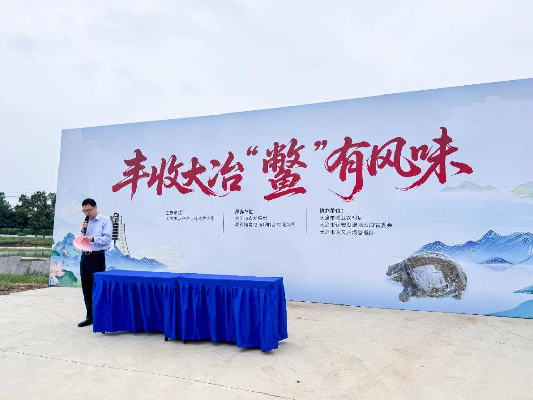 9月29日,农历八月初八,2025中国农民丰收节·黄金湖甲鱼金秋消费季在大冶市保安湖湿地管委会盛大启幕。活动由大冶市水产产业链领导小组主办,市农发集团、添翼跨境电商(湖北)有限公司联合承办,采取“线上直播展销+线下沉浸体验”双轮驱动,仅抖音平台便实现甲鱼销售500单、再创黄石水产品单品类直播带货新纪录。