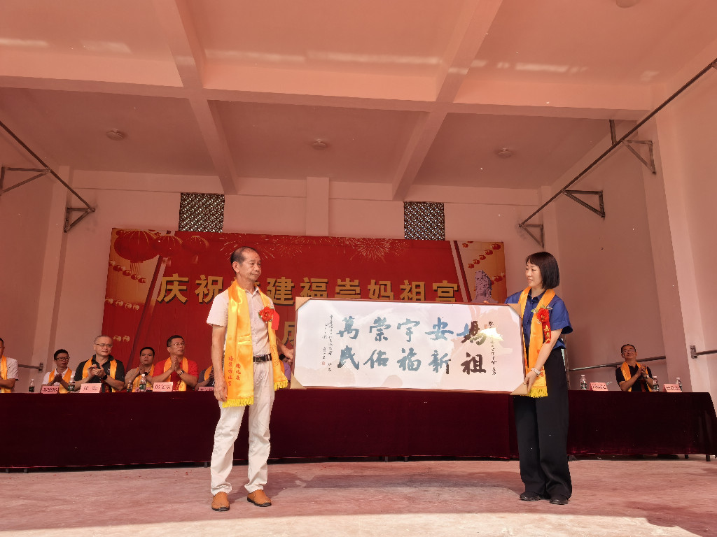 庆典仪式上,中国非遗保护协会陈吉副会长、湄洲妈祖祖庙董事会郑文贵董事、龙浔镇人民政府陈子苹镇长、德化县妈祖文化交流协会徐明侃会长共同为德化县福崇妈祖宫揭牌,标志着这座凝聚历史的妈祖宫正式开启新篇章。