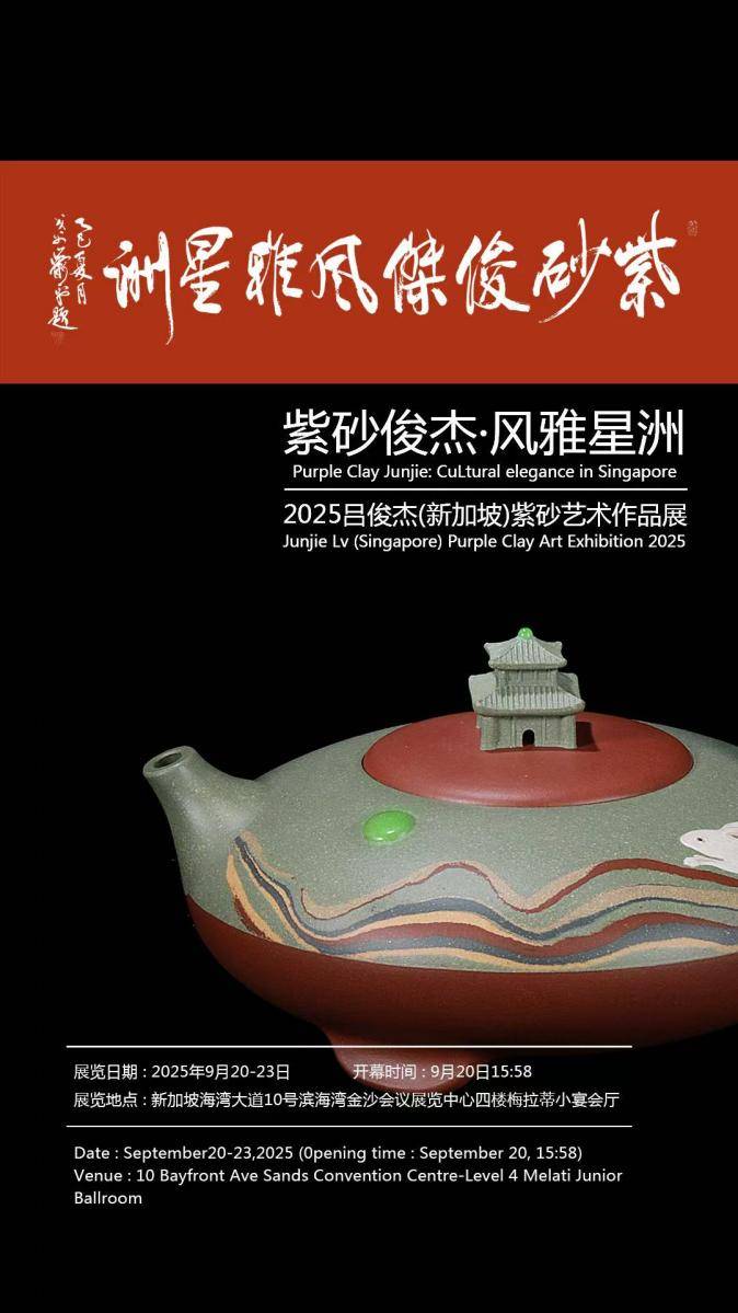 公元2025年9月20日下午,由中国工艺美术大师、紫砂艺术巨匠吕俊杰先生带来的 “紫砂俊杰·风雅星洲——2025吕俊杰(新加坡)紫砂艺术作品展”,在新加坡滨海湾金沙会议展览中心隆重拉开帷幕,40多件凝聚大师匠心与艺心的精美原创作品,向世人展现出一个意蕴深远、宁静致远的艺术境界。