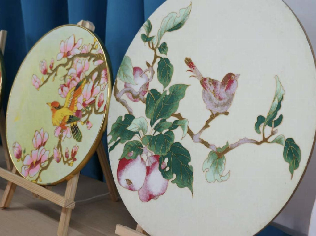 接着钱敏老师带着实践队成员们参观成品,由掐丝珐琅画制作的中草药、梅兰竹菊映入眼帘,当非遗艺术遇上古典文化,成员们仿佛打开新世界的大门,触摸着这些艺术品感受岁月沉淀的温度。