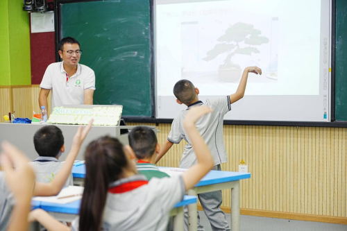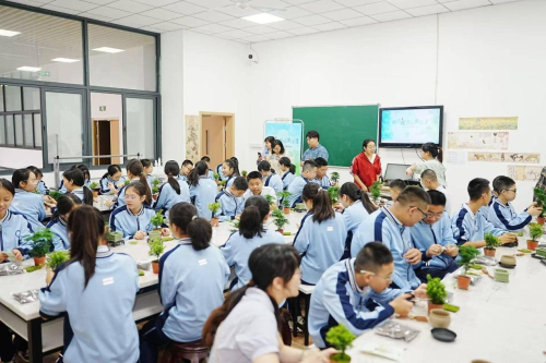 10月9日,温江区和盛小学校、温江区鹏程小学校已先后开展《盆景艺术命名》、《盆景与当地民俗》、《盆景鉴赏》等课程,同学们用温江方言为小盆景取趣味名字、分享身边与盆景相关的民俗故事、名作赏析与“诗词配盆景”创作相结合、为喜爱的盆景题诗作画,展现出对传统文化的“新热情”。