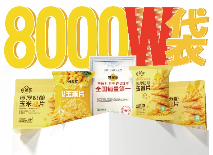 新生代健康零食品牌食验室,正是抓住这一机遇的代表。品牌精准捕捉消费者“既要健康,又要轻盈美味”的需求,并将其转化为可感知的愉悦体验。通过对玉米片的口感与口味进行创新优化,食验室打破“健康零食不好吃”的刻板印象,实现“好吃不腻”的体验升级。截至目前,其玉米片累计销量已突破8000万袋,更斩获“玉米片系列连续3年全国销量第一”的成绩。这背后是品牌以严谨科学精神专研食品健康科技,对“定义和化解食品界的一切不可能”的坚持。