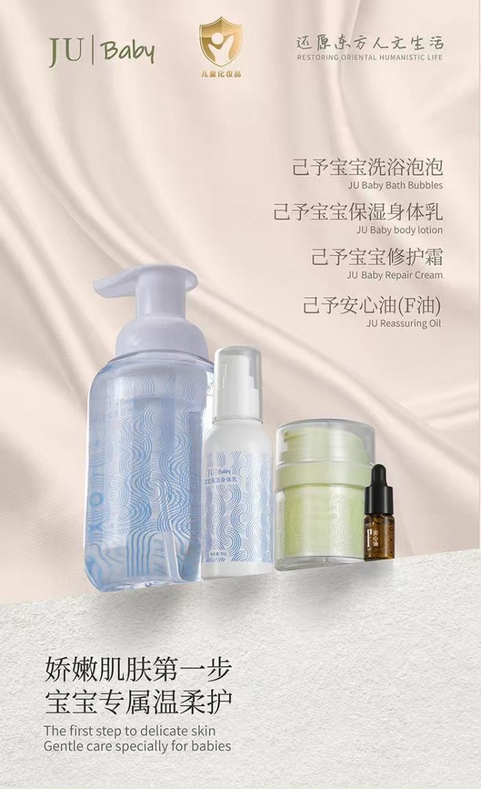 己予宝宝加倍呵护套装包括:己予宝宝洗浴泡泡、己予宝宝保湿身体乳、己予宝宝修护霜和己予安心油,解决困扰新手家长在宝宝护肤过程中遇到宝宝配合度较低和皮肤状况不稳定等问题。