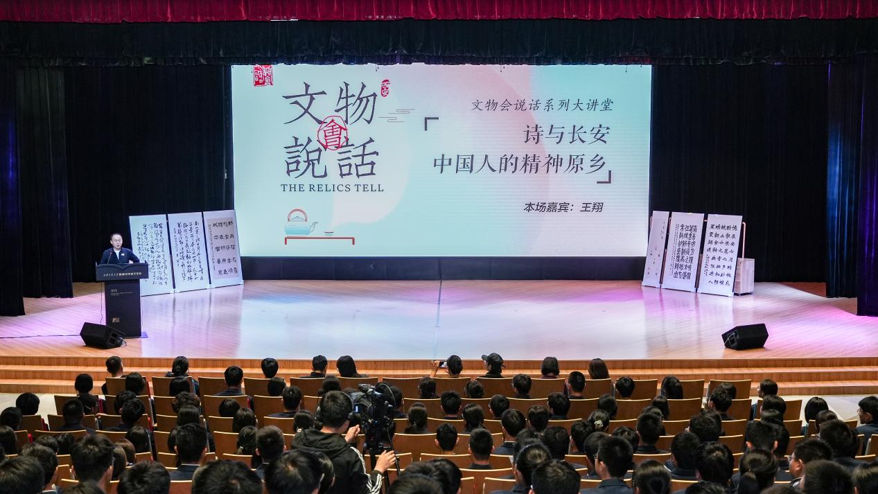 2025年10月10日,由西安市文物局主办的“文物会说话”系列大讲堂第十期走进校园,在西安交大附中航天高级中学成功举办。本期讲座以《诗与长安——中国人的精神原乡》为主题,特邀北京师范大学教育学博士王翔老师担任主讲,以诗为媒,通过生动讲解与鲜活案例,带领师生穿越千年,在唐诗的韵律中,寻访中华文明的精神根脉。