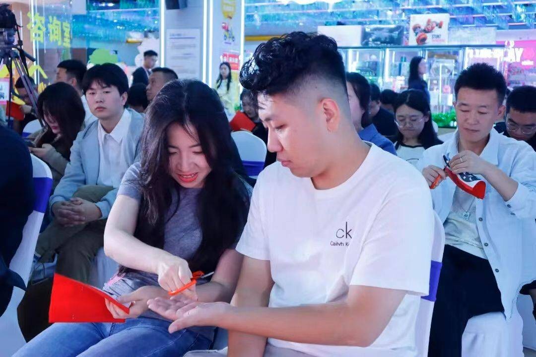值得一提的是,非遗元素为本次相亲活动增添了独特魅力。非遗剪纸人、非遗传承人董存娥亲临活动现场,为青年男女们带来了一场精彩绝伦的技艺表演。她手中的剪刀如灵动的舞者,在纸张间游走,不一会儿,一幅幅精美的剪纸作品便跃然眼前。表演结束后,董存娥还贴心地为青年男女们送上了自己亲手制作的礼物,这份饱含心意的手作,让现场氛围更加温馨。