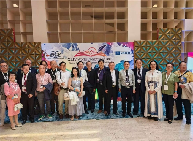 中国诗歌代表团在世界诗人大会开幕式上的合影