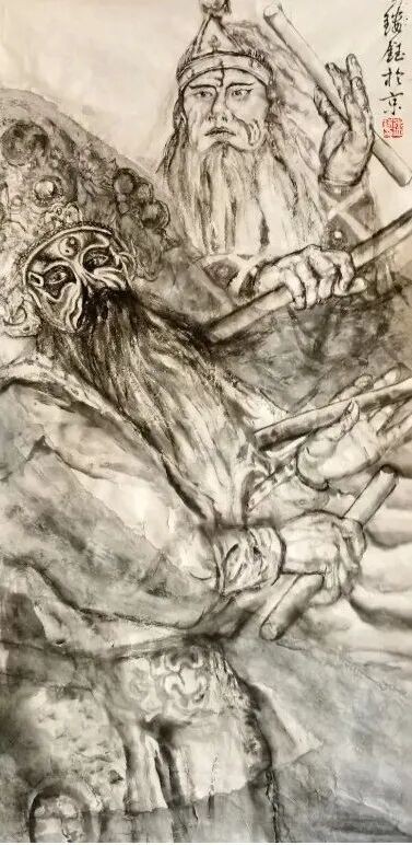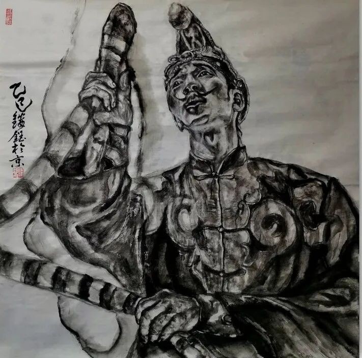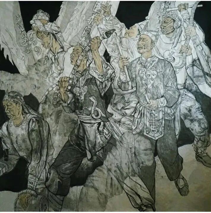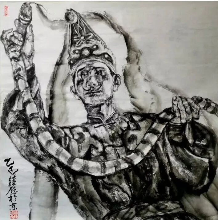我2015年-2018年研读中国国家画院前副院长张江舟导师博士课程班,1972年张江舟老师在河南郑州师从陈端豪先生(就读西安美院和王子武先生是同班同学)学习绘画,期间独特的线描训练方式,为日后发展打下了坚实的基础。博士课程结业后我一直在京在导师张老师指导下潜研综合学习,张江舟老师胸怀宽广指导我博学众名师大家。研究潮汕英歌舞写意水墨人物画对于造型观的问题,即形象呈现的方式问题,遵循着顾恺之所提出的“以形写神”、“形神兼备”的标准。神形本来就应该是合一的,神寄居于形,没有形,神则无所依附。