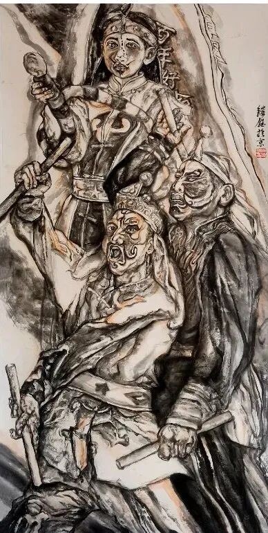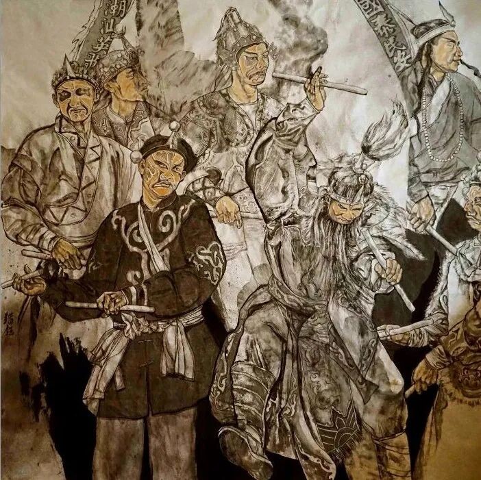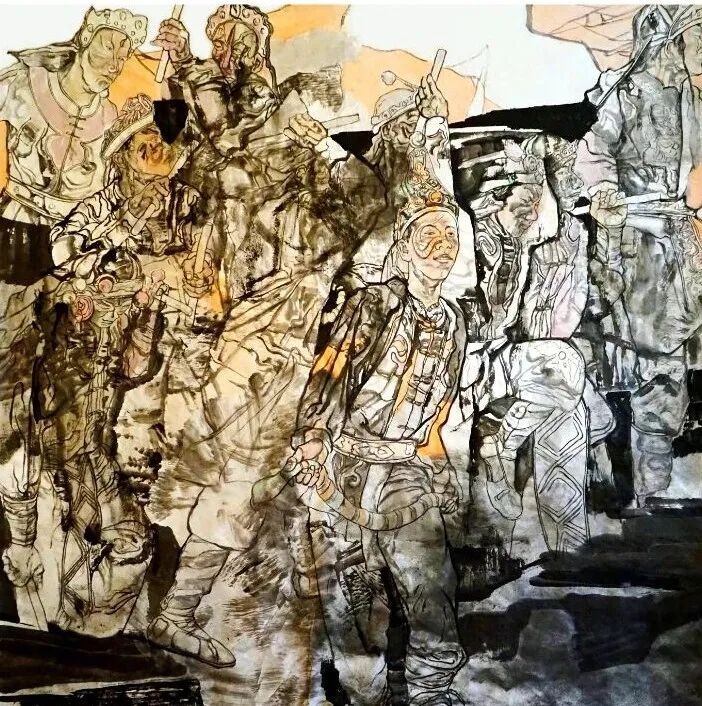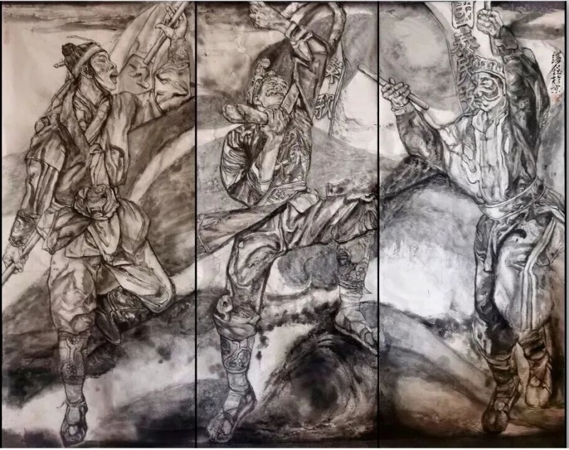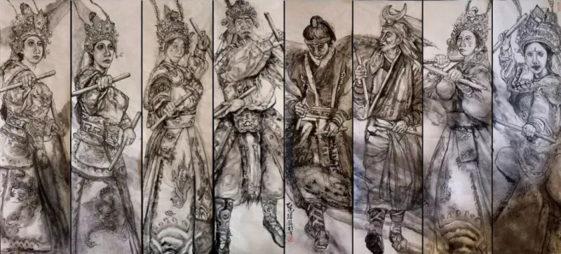 在英歌舞创作实践中还赋予了写意水墨材料不确定性因素和无限表达可能的美学意义。潮汕英歌舞不止是一场表演,是族群记忆的回响,是血脉里的力量,是复兴中华民族伟大的文化自信的其中一部分。传统可以很燃,也可以很酷。在潮汕大街、广场、舞台、旧巷、伴随水墨英歌舞绘画作品走向全国各地以及国外,向全世界讲好中国故事。