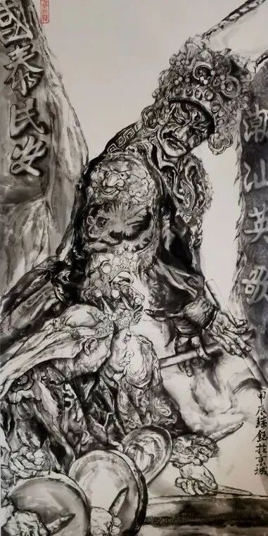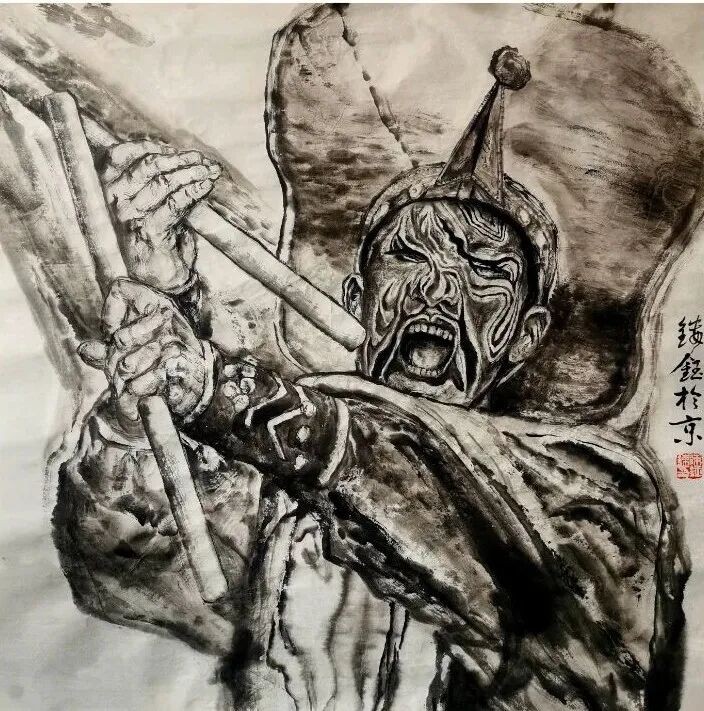 由中原迁徏而至南中国天涯海角的潮汕人,历经二千多年,至今仍保持着十分鲜明的特质:既新潮而又传统,既多情而又重义,既强悍而又柔软,既追求独善其身而又浩荡着家国情怀。“英歌舞”便是这种特质十分彰显的注脚。潮汕地区的普宁人,对“英歌舞"的喜爱最甚。 普宁小伙陈钰鍊,昔年为拜师学艺,竟舍弃舒适的工作环境,跨越山水,于京城遍寻艺术之奥妙,清心寡欲于水墨点泼的激烈壮怀。沉寂多年,近期骤然灵光闪烁,为世人奉上恢宏的 “陈钰鍊英歌舞水墨画系列"。其形神之精细,其场景之壮阔,仿若雄健舞步目及,铿锵鼓点在耳,栩栩如生,令人感动。犹其脱尽多彩铅华、纯一色水墨的创作,又为中国画"英歌舞"的画苑中独树一帜,创新精神可喜可嘉。吾犹感后生可畏,送上滿怀祝贺,更期点泼更为洒脱,形似,神更似,势更磅礴,气更聚。来日登高处,壮吾潮汕,壮吾岭南,壮吾华厦!可期可待。