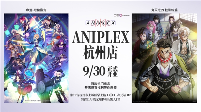 索尼集团成员,安尼普(上海)文化艺术有限公司(下称,ANIPLEX)宣布,ANIPLEX杭州店将于9月30日正式开业。新店位于杭州工联CC地下二层223、224号,集品牌沉浸式体验与周边购买于一体,将汇聚《Fate/Grand Order》《鬼灭之刃》《孤独摇滚!》《魔法少女小圆》系列等多部人气作品。同时,丰富的线上线下活动在开业期间举办,购物特典、社交平台互动礼与限量福袋等系列活动同步推出,为杭州及周边城市的动画、手游、影视爱好者构建一个可逛、可玩、可分享的沉浸式娱乐新地标。