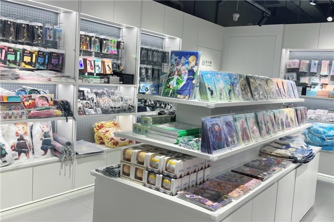 店内汇集多部经典与热门作品的全品类周边,涵盖精致手办、色纸、玩偶、徽章盲盒及文具等百款热门商品。展示的IP包括《Fate/Grand Order》《鬼灭之刃》《孤独摇滚!》等人气作品。