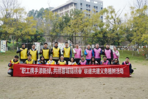 活动上,双方领导与职工代表共同参与启动仪式。活动创新融入“种子唤醒计划”,通过团队游戏兑换树苗,增强职工协作意识。在“田间一条龙”环节,各组成员默契配合,接力调整蔬菜位置完成连线任务;而“每一步都算树”游戏中,大家手持扇子巧妙驱赶“小鸡”绕过障碍,欢声笑语中传递环保理念。最终,职工们用游戏赢取的种子兑换树苗,为后续植树注入更多期待。植树现场,职工们分工协作,挥锹挖坑、扶苗培土、提水浇灌,干劲十足。经过近一小时的努力,数十株新栽的树苗迎风挺立,为应龙山庄增添一片生机。活动最后,全体参与者在亲手栽种的树苗前合影留念,记录下“共建绿色蓉城”的珍贵瞬间。
