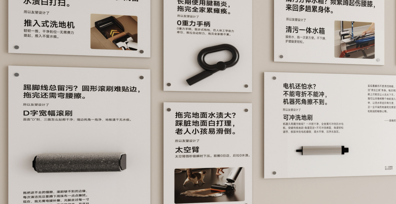 “科技不应该是冰冷的自high的,而是应该走心的,温暖的,为更好的生活服务的。”从洗地机的“可冲洗地刷”到“推入式基站”,再到“扫地僧”的创新扫震地刷和自清洁系统,友望始终秉承着“以科技暖人心,让爱干净的你不受罪”的初心理念。