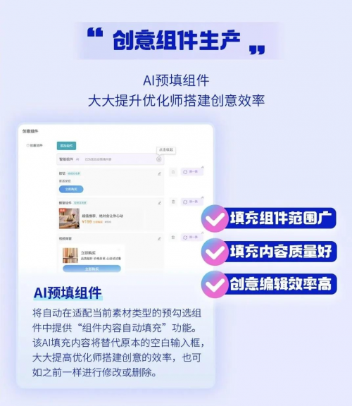 此外,灵创AI还接管了枯燥的“后勤”工作。系统能自动识别素材类型,智能生产并预填卡片标题、橱窗组件等创意组件内容。这将运营者从繁琐、重复但必要的创编步骤中解放。