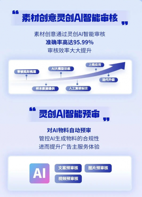 在审核端,高达95.99%的准确率以及对AI物料的自动预审,为广告主提供了一道可信赖的安全阀,让效率落地可控。